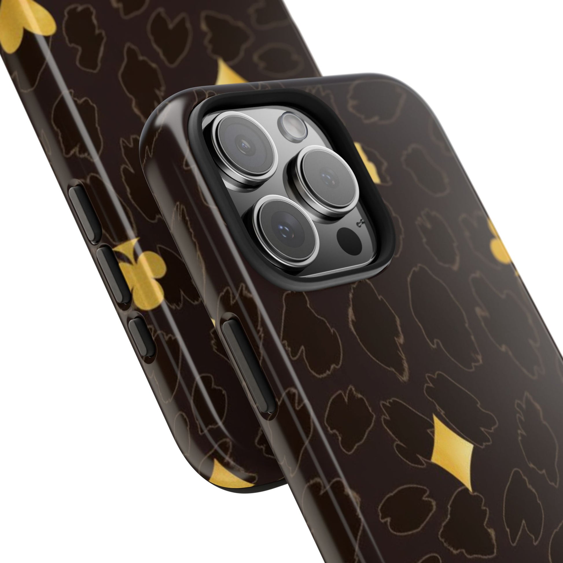 This Leopard brown with gold ace accents phone case exudes a stylish and luxurious vibe, perfect for those who want to add a touch of glamour to their everyday tech accessories. Ideal for adults looking for a durable and impact-resistant case that also offers shock absorption and screen protection. Great for gifting during birthdays, holidays, or special occasions.